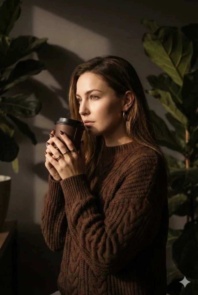 Moody Aesthetic Portrait with Coffee